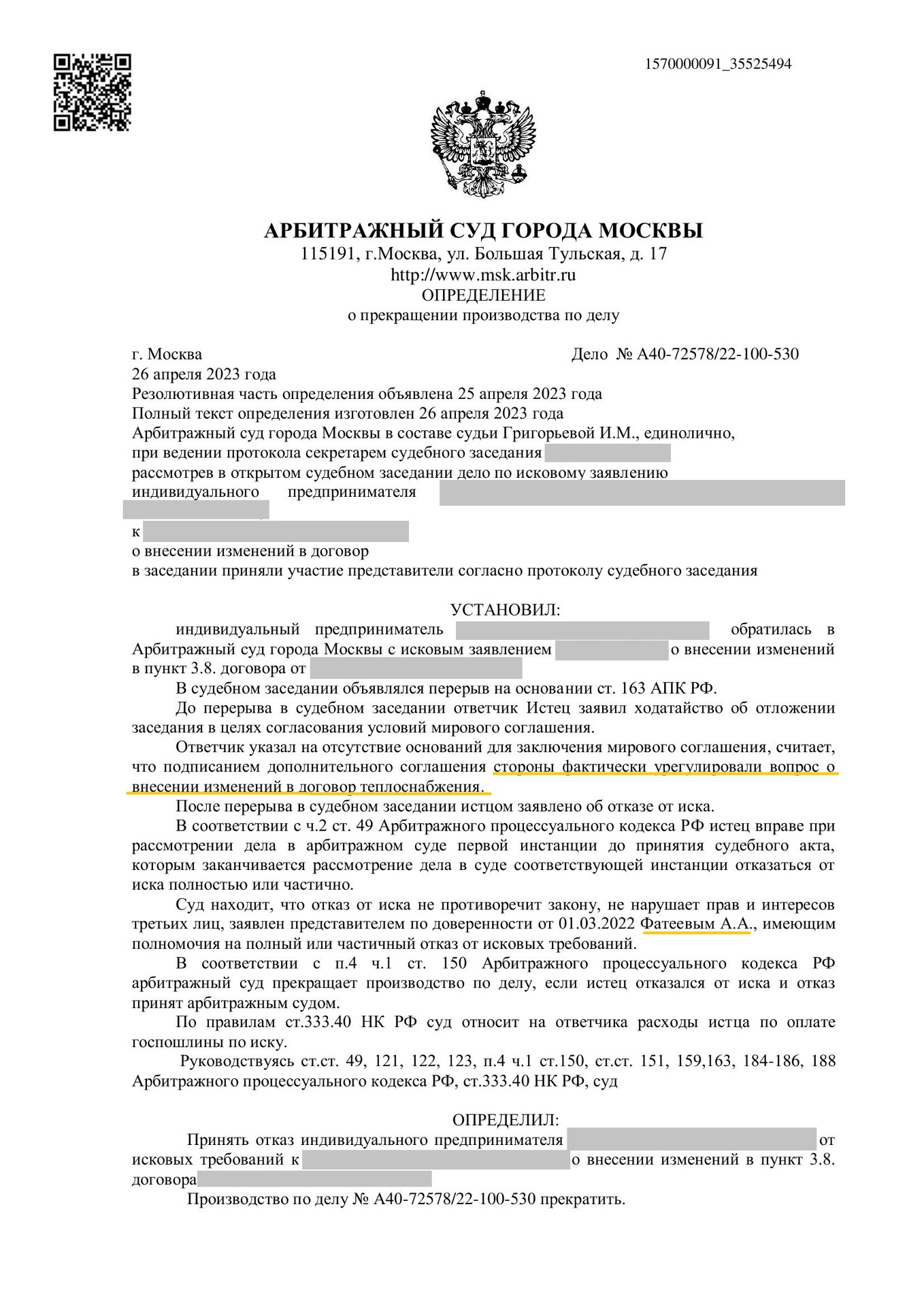 Ситуация: Клиент являлся абонентом по договору теплоснабжения. В результате больших теплопотерь клиент постоянно переплачивал, однако ответчик отказывался изменить условия договора.